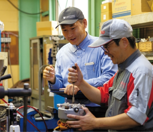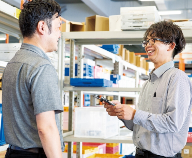 機器グループは様々な商品をメーカーから仕入れ、お客様に販売する商社的な役割りをします。幅広い分野の商品を扱うだけでなく、専門知識が必要な商品や、お客様のご要望に合う最適な商品の選定・ご提案をします。専門性・柔軟な対応力・きめ細かなサポートを心がけ、日々生産現場に訪問。お客様との信頼関係を築いて行きます。常にお客様を第一に考え、ともに歩み、喜んで頂けることを目指しています。